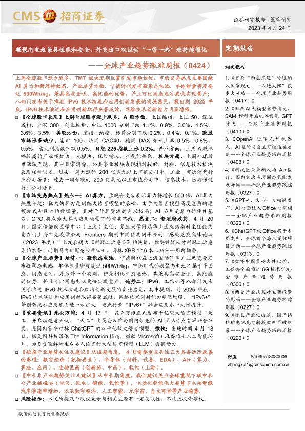 【海通证券】【20230424】全球产业趋势跟踪周报:凝聚态电池兼具性能和安全,外交出口双驱动“一带一路”迎持续催化-34页