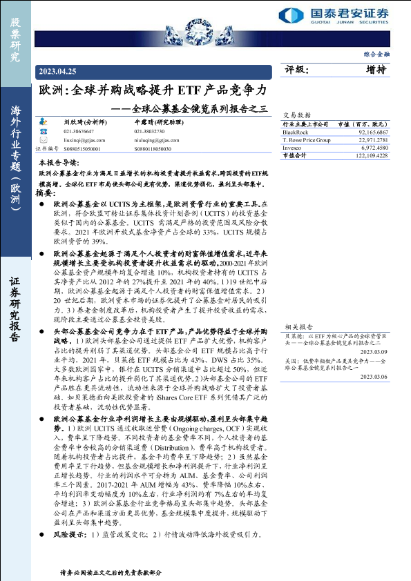 【国泰君安证券】【20230425】欧洲:全球并购战略提升ETF产品竞争力-18页