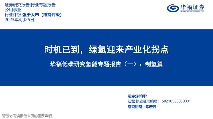 【华福证券】【20230425】公用事业行业低碳研究氢能专题报告(一):制氢篇,时机已到,绿氢迎来产业化拐点-35页