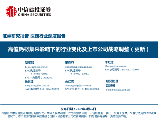 【中信建投证券】【20230426】医药行业深度报告:高值耗材集采影响下的行业变化及上市公司战略调整(更新)-67页