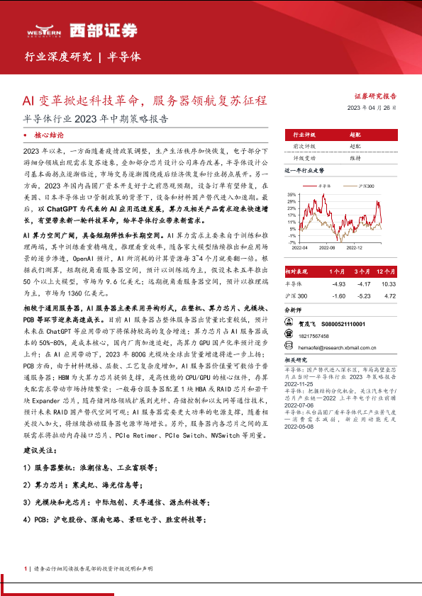 【西部证券】【20230426】半导体行业2023年中期策略报告:AI变革掀起科技革命,服务器领航复苏征程-31页