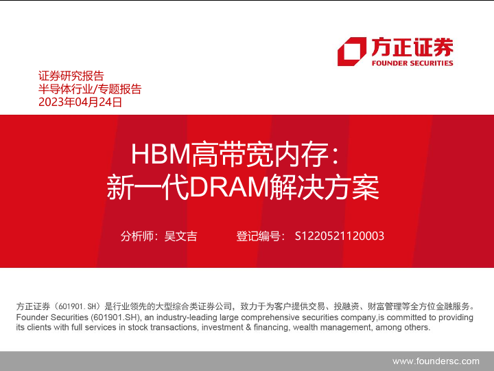 【方正证券】【20230424】半导体行业专题报告:HBM高带宽内存,新一代DRAM解决方案-33页