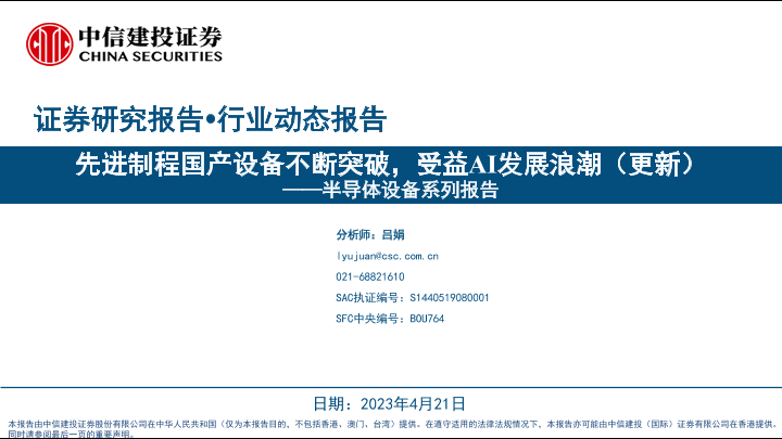 【中信建投证券】【20230421】半导体设备行业系列报告:先进制程国产设备不断突破,受益AI发展浪潮(更新)-21页