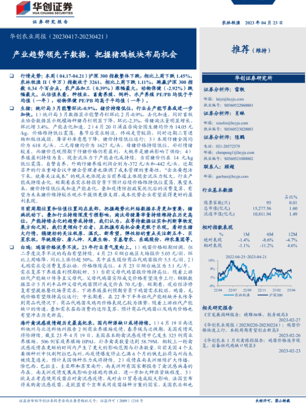 【华创证券】【20230423】华创农业周报:产业趋势领先于数据,把握猪鸡板块布局机会-37页