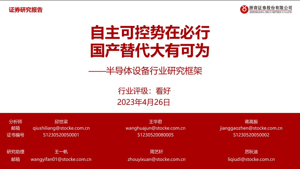 【浙商证券】【20230426】半导体设备行业研究框架:自主可控势在必行,国产替代大有可为-71页