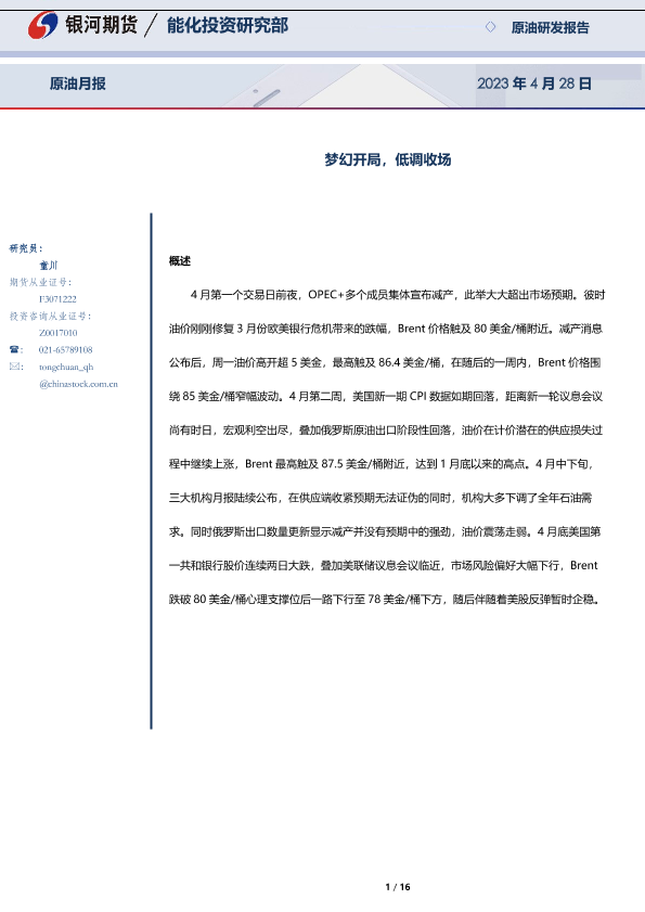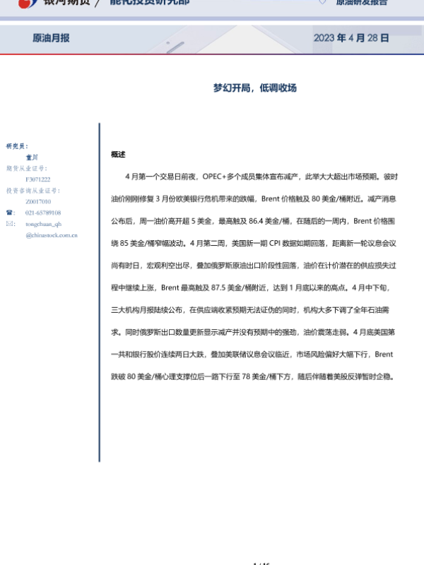 【银河期货】【20230428】原油月报:梦幻开局,低调收场-16页