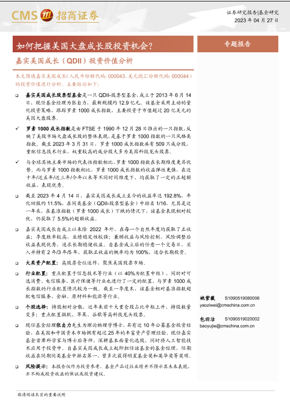 【海通证券】【20230427】嘉实美国成长(QDII)投资价值分析:如何把握美国大盘成长股投资机会?-16页