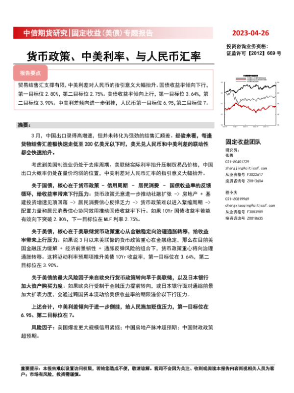 【中信期货】【20230426】固定收益(美债)专题报告:货币政策、中美利率、与人民币汇率-28页