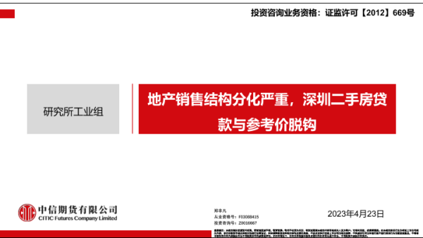 【中信期货】【20230423】地产销售结构分化严重,深圳二手房贷款与参考价脱钩-20页