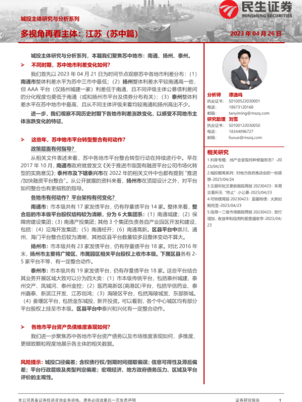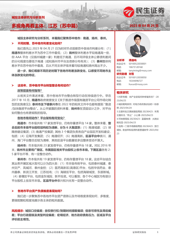 【民生证券】【20230426】城投主体研究与分析系列:多视角再看主体,江苏(苏中篇)-30页