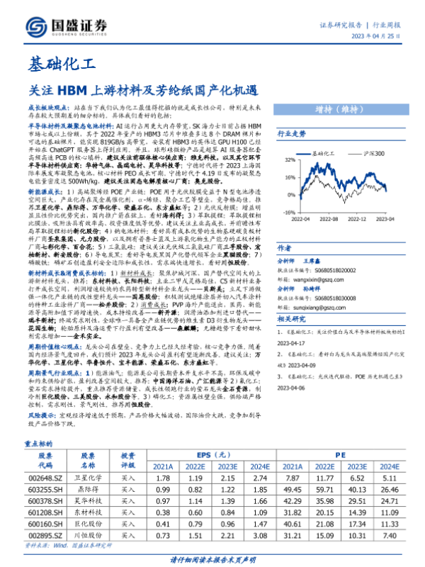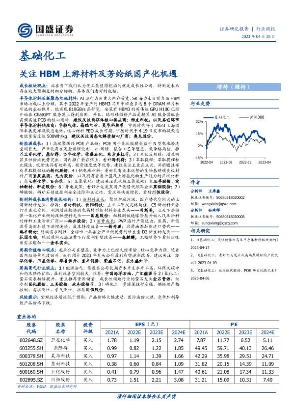 【国盛证券】【20230425】基础化工行业周报:关注HBM上游材料及芳纶纸国产化机遇-23页