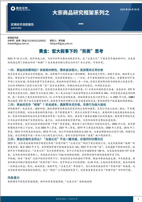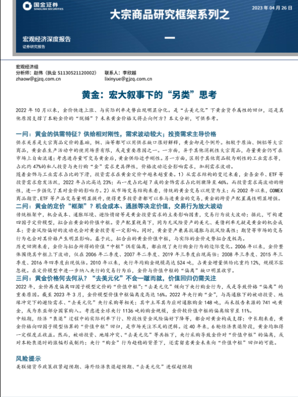 【国金证券】【20230426】大宗商品研究框架系列之一:黄金:宏大叙事下的“另类”思考-17页
