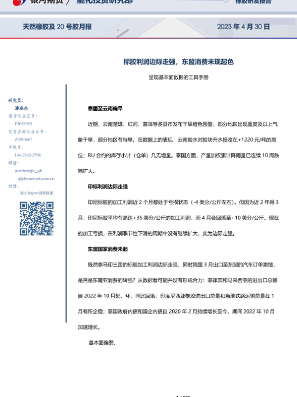 【银河期货】【20230430】天然橡胶及20号胶月报:标胶利润边际走强,东盟消费未现起色-106页