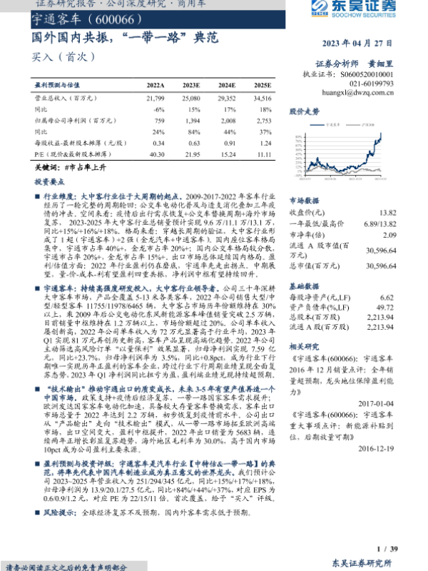 【东吴证券】【20230427】宇通客车-国外国内共振,“一带一路”典范-39页