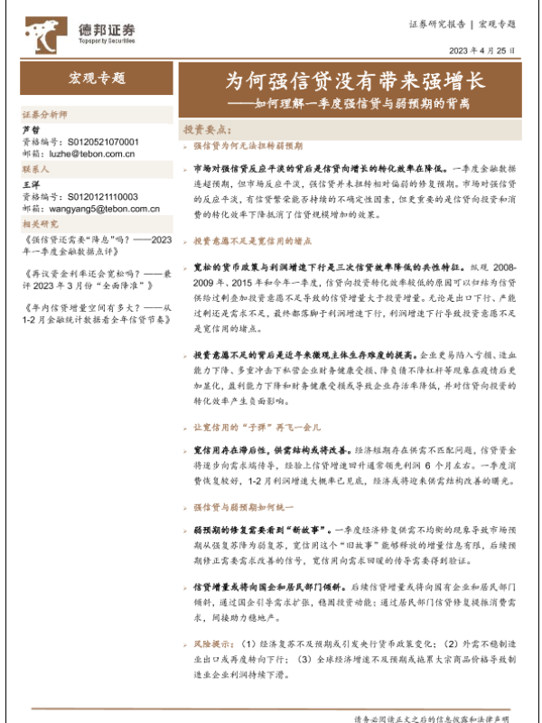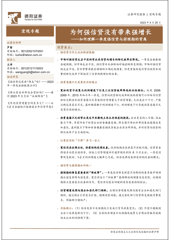 【德邦证券】【20230425】如何理解一季度强信贷与弱预期的背离:为何强信贷没有带来强增长-16页