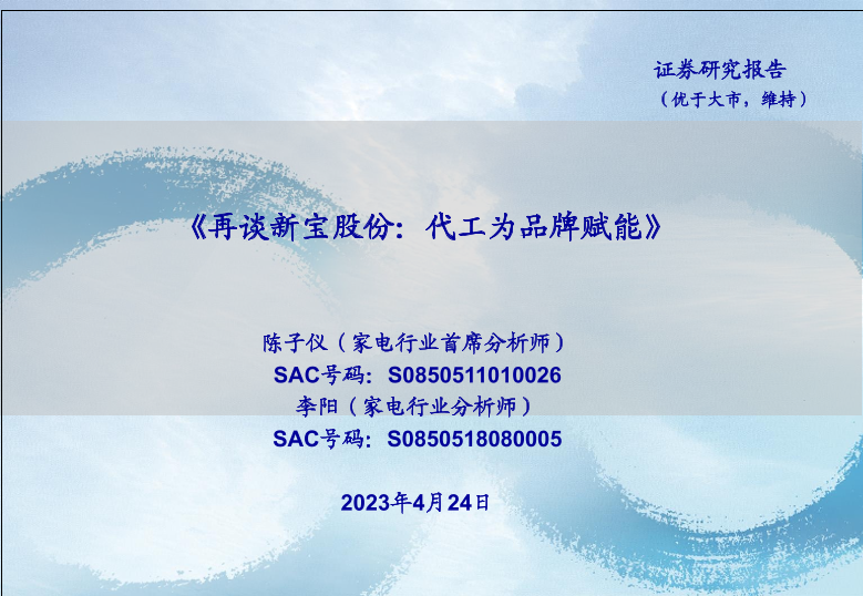 【海通证券】【20230424】再谈新宝股份:代工为品牌赋能-23页