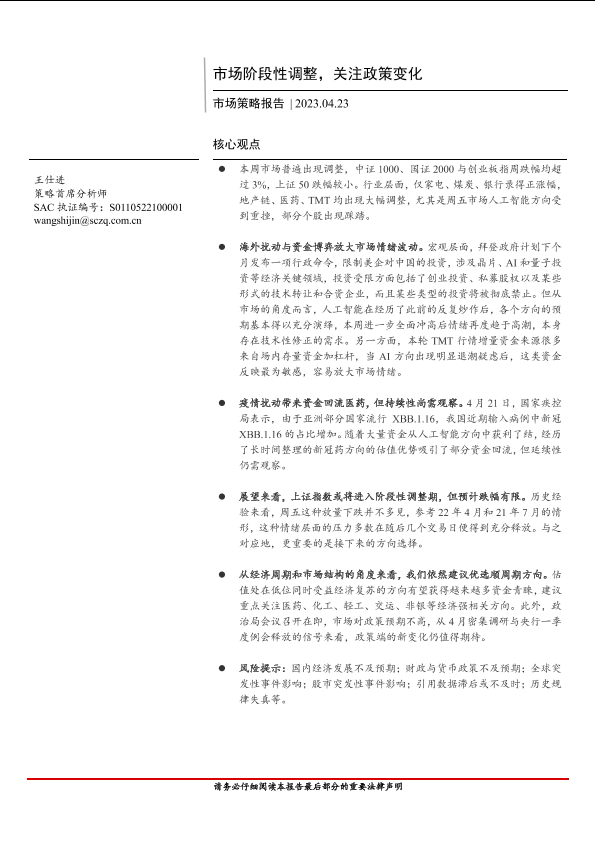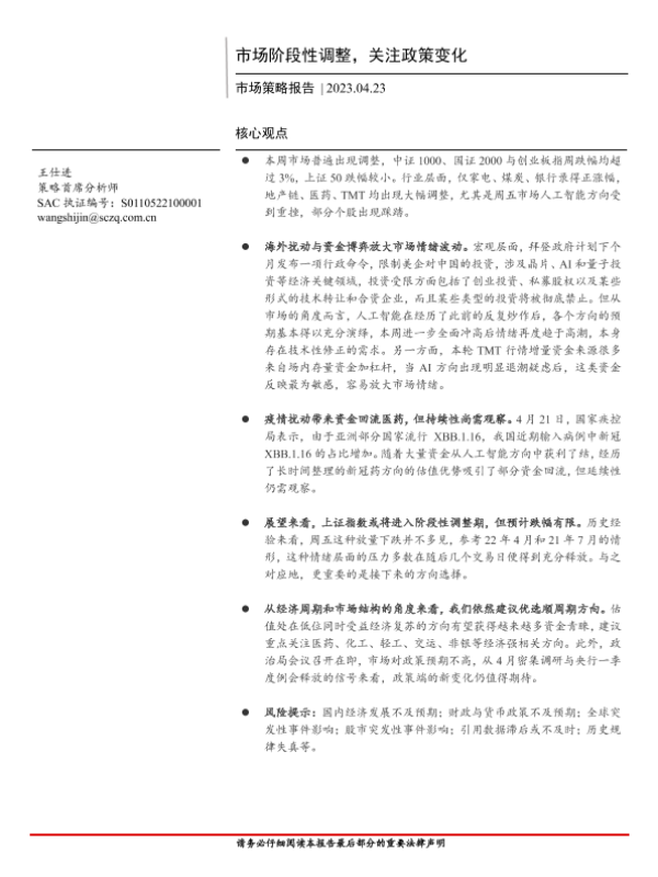 【首创证券】【20230423】市场策略报告:市场阶段性调整,关注政策变化-16页