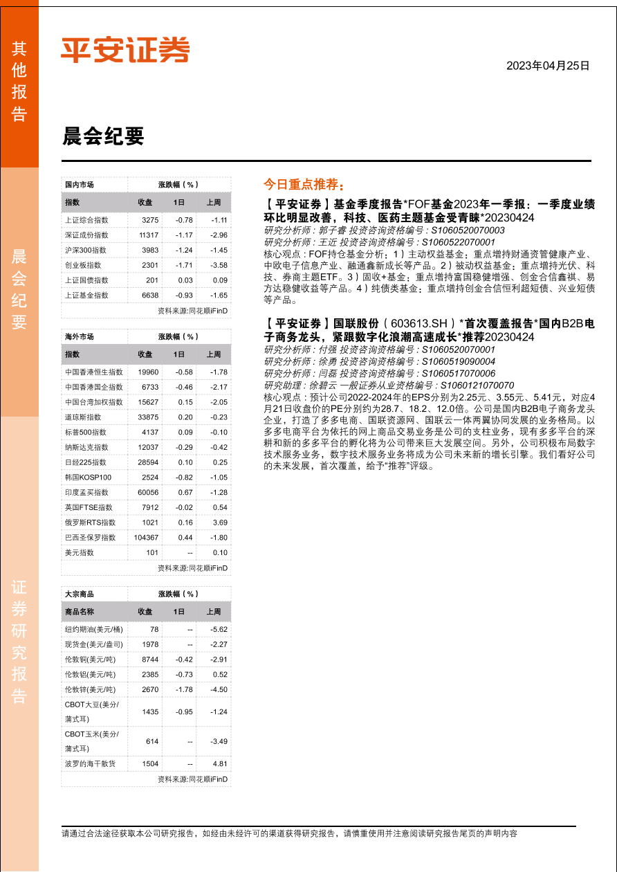 【平安证券】【20230425】晨会纪要-20230425-平安证券-15页