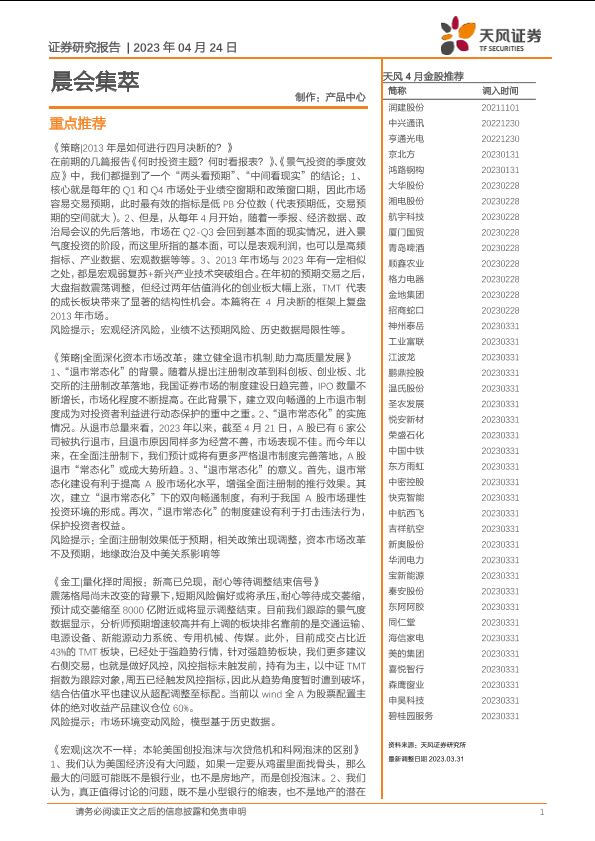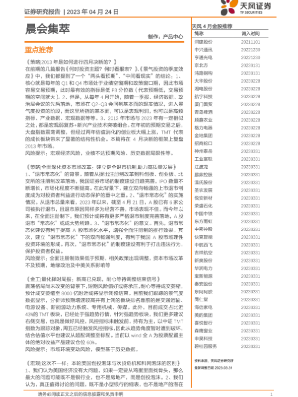 【天风证券】【20230424】晨会集萃-20230423-天风证券-50页