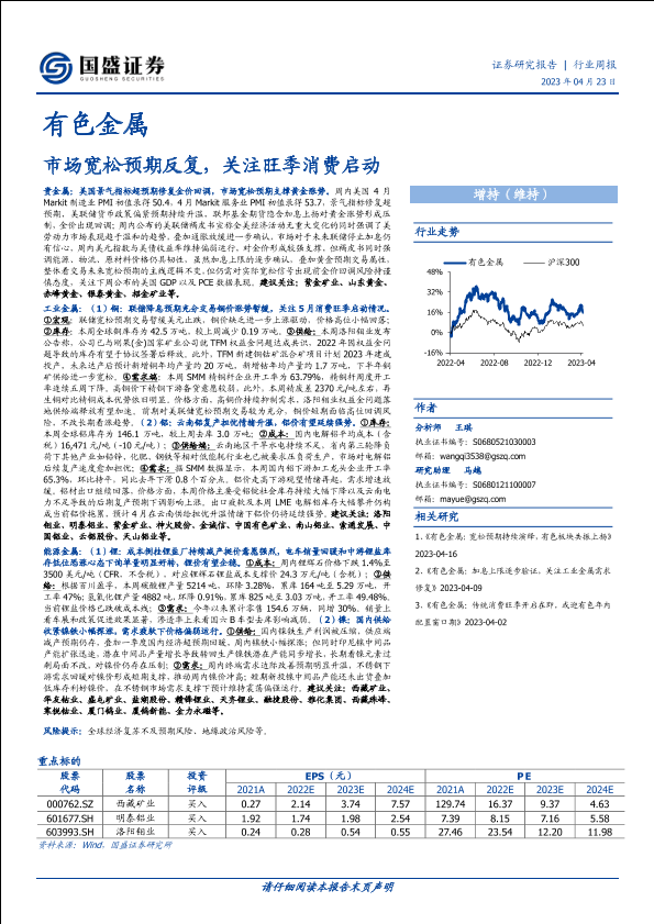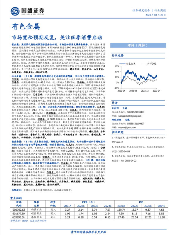 【国盛证券】【20230423】有色金属行业周报:市场宽松预期反复,关注旺季消费启动-31页