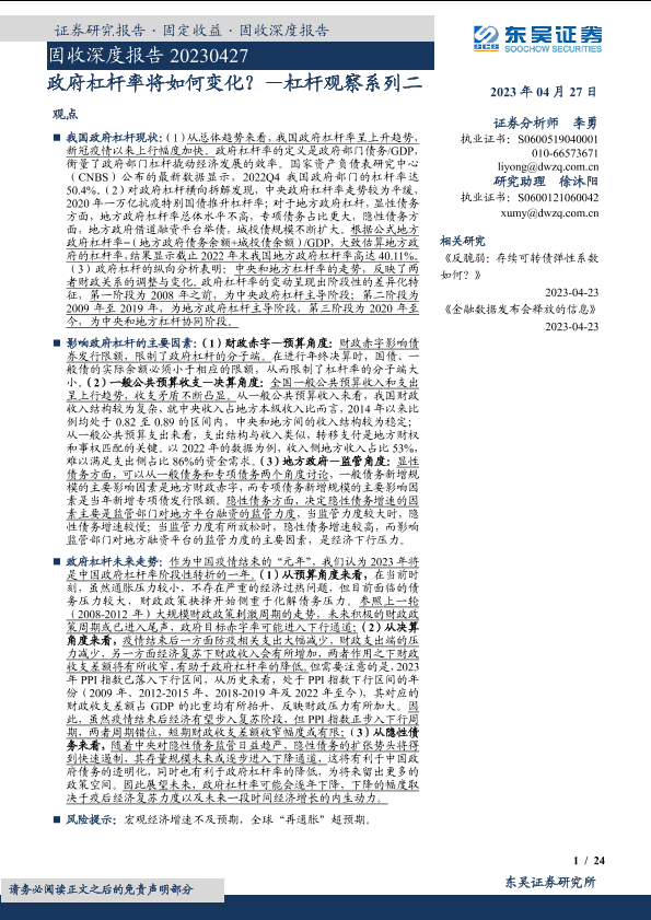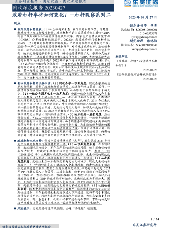 【东吴证券】【20230427】政府杠杆率将如何变化?—杠杆观察系列二-24页