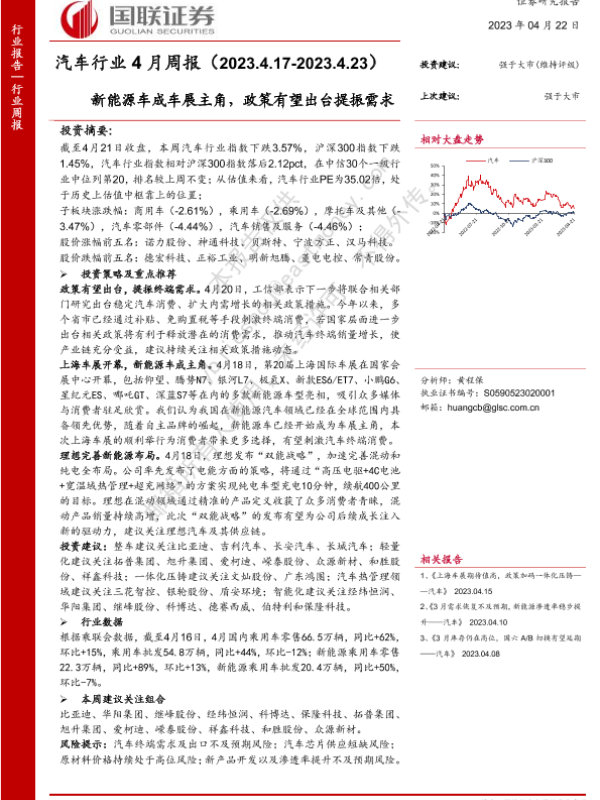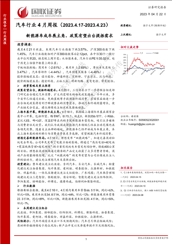 【国联证券】【20230422】汽车行业4月周报:新能源车成车展主角,政策有望出台提振需求-22页