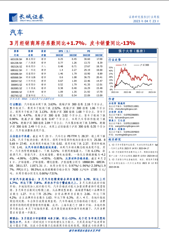 【长城证券】【20230423】汽车行业周报:3月经销商库存系数同比+1.7%,皮卡销量同比-13%-29页
