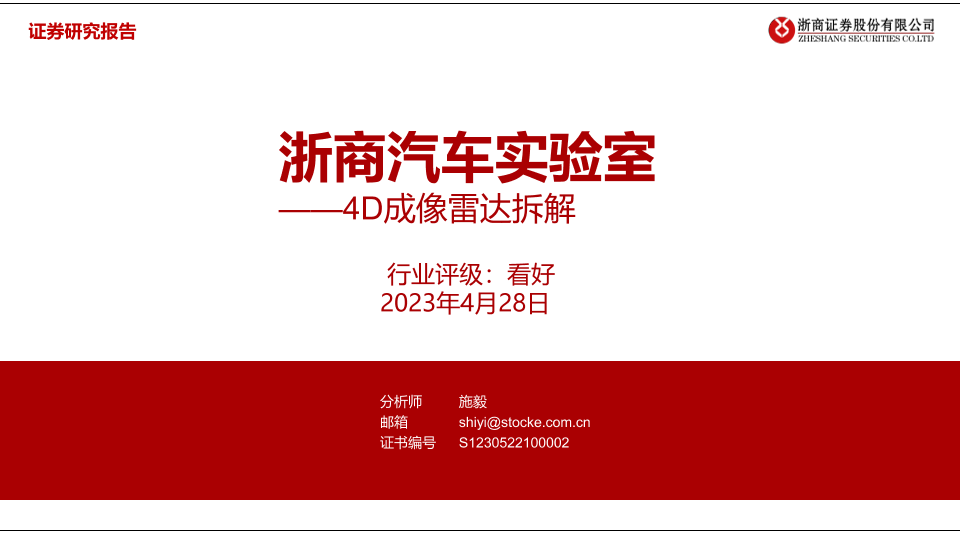 【浙商证券】【20230428】汽车行业:汽车实验室,4D毫米波雷达拆解-19页