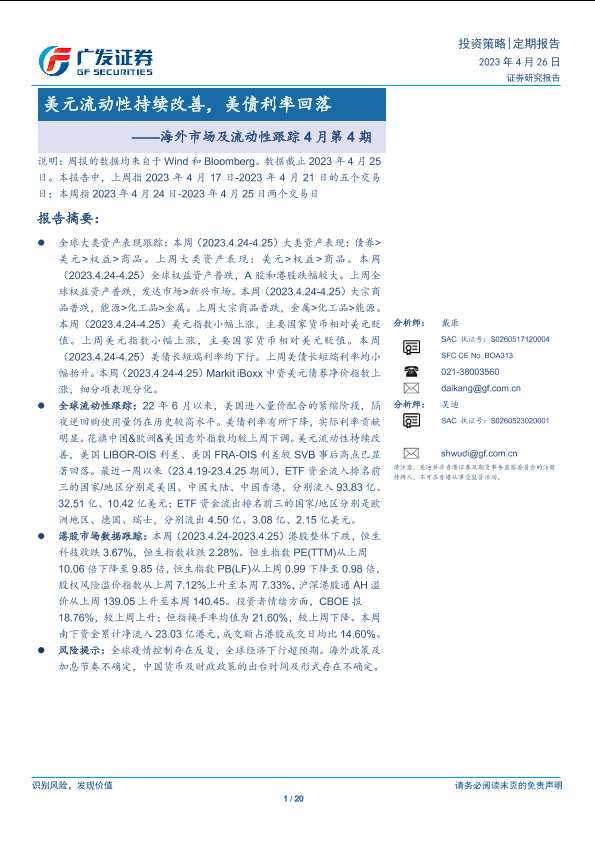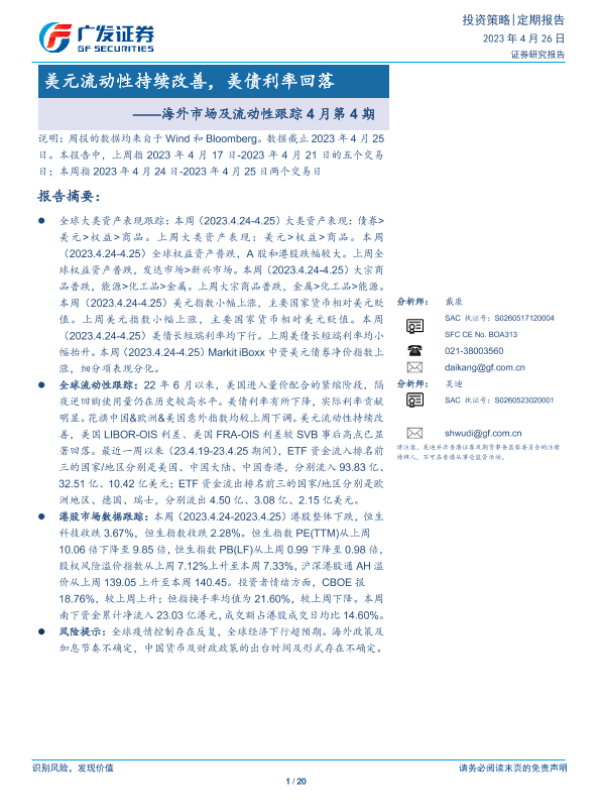 【广发证券】【20230426】海外市场及流动性跟踪4月第4期:美元流动性持续改善,美债利率回落-20页