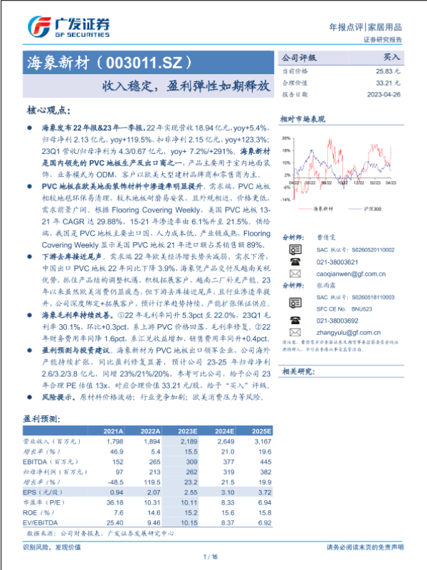 【广发证券】【20230426】海象新材(003011)收入稳定,盈利弹性如期释放-16页