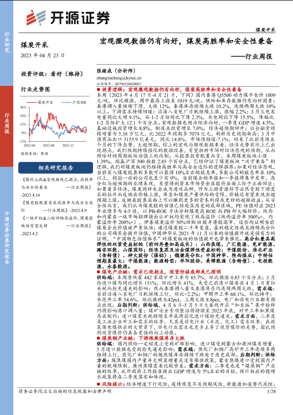 【开源证券】【20230423】煤炭开采行业周报:宏观微观数据仍有向好,煤炭高胜率和安全性兼备-28页