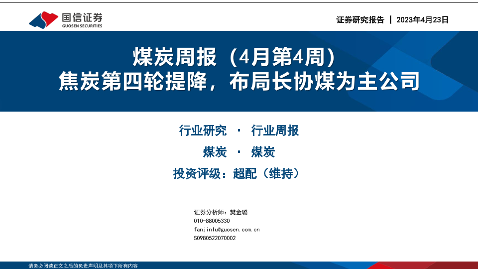 【国信证券】【20230423】煤炭周报(4月第4周):焦炭第四轮提降,布局长协煤为主公司-28页