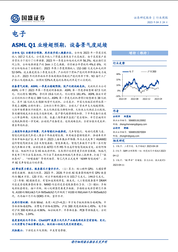 【国盛证券】【20230424】电子行业周报:ASML Q1业绩超预期,设备景气度延续-18页
