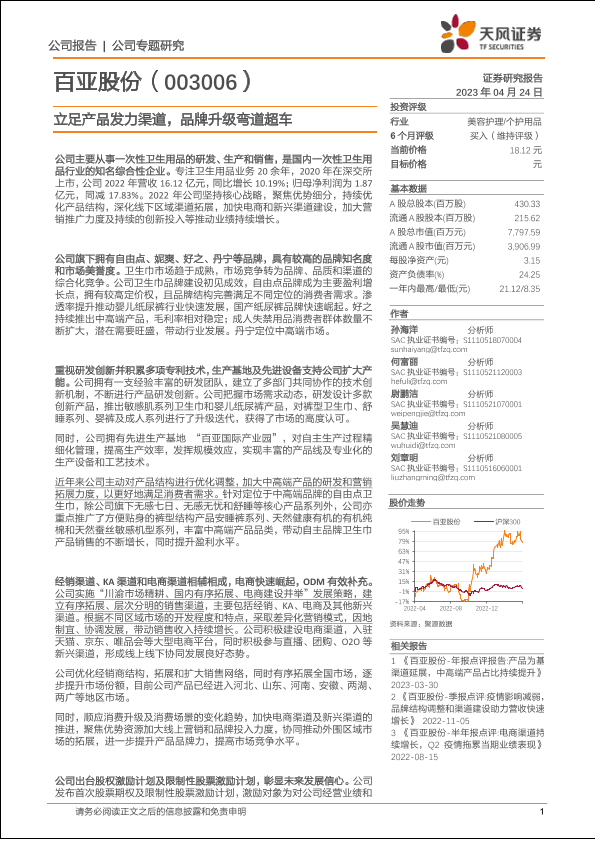 【天风证券】【20230424】百亚股份(003006)立足产品发力渠道,品牌升级弯道超车-28页