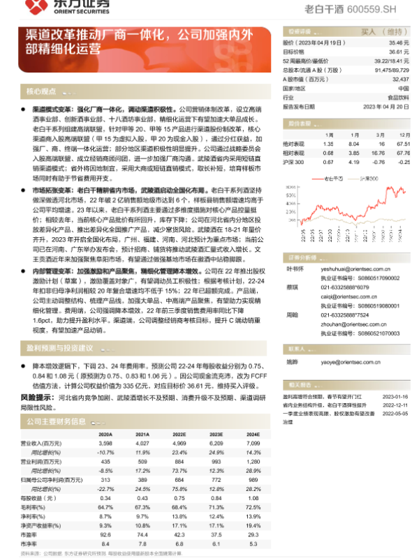 【东方证券】【20230420】老白干酒(600559)渠道改革推动厂商一体化,公司加强内外部精细化运营-15页