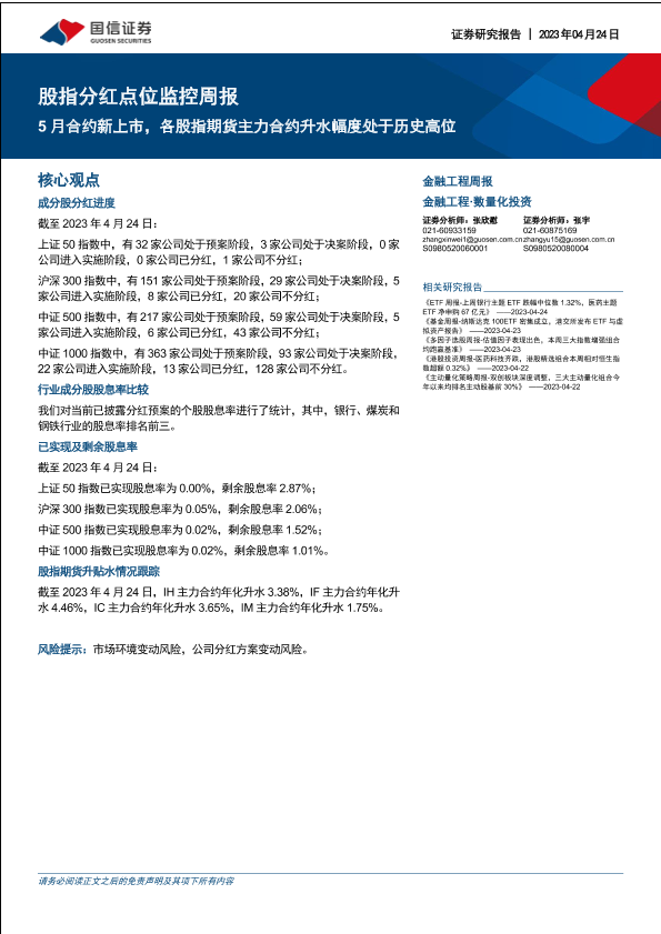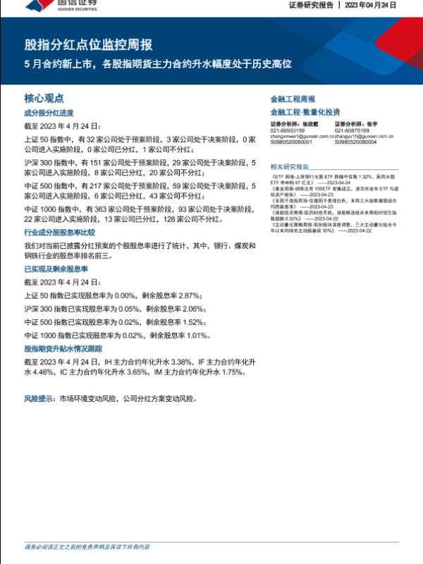 【国信证券】【20230424】股指分红点位监控周报:5月合约新上市,各股指期货主力合约升水幅度处于历史高位-16页