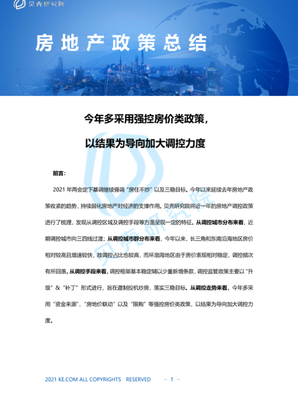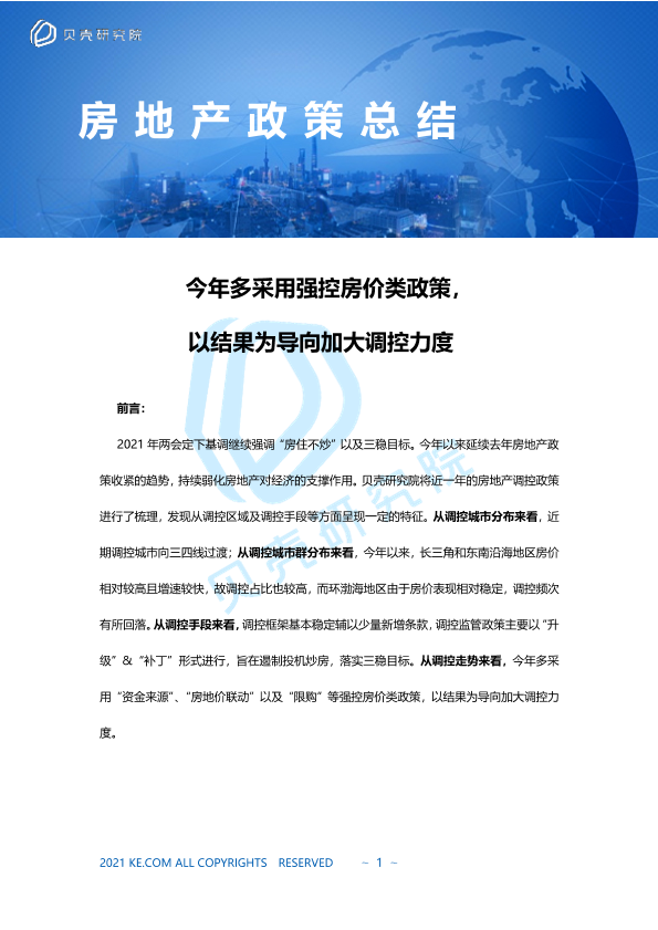 【贝壳研究院】【20210101】今年多采用强控房价类政策以结果为导向加大调控力度-10页