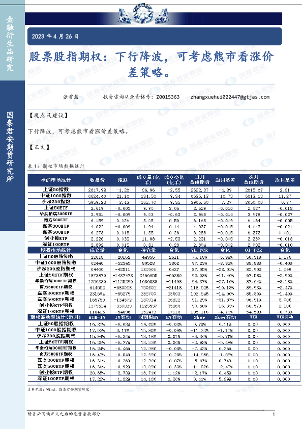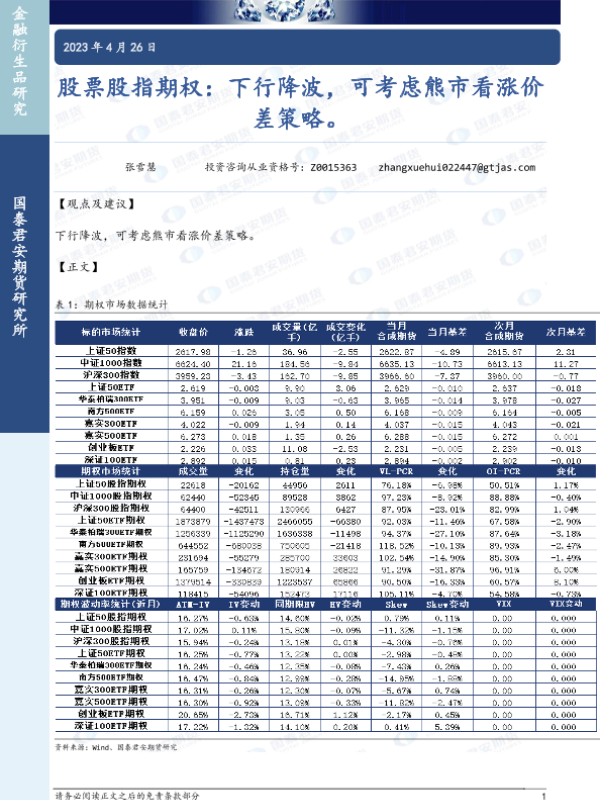 【国泰君安期货】【20230426】股票股指期权:下行降波,可考虑熊市看涨价差策略-32页