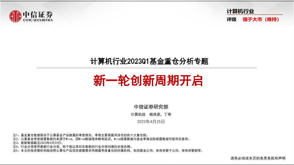 【中信证券】【20230425】计算机行业2023Q1基金重仓分析专题:新一轮创新周期开启-18页
