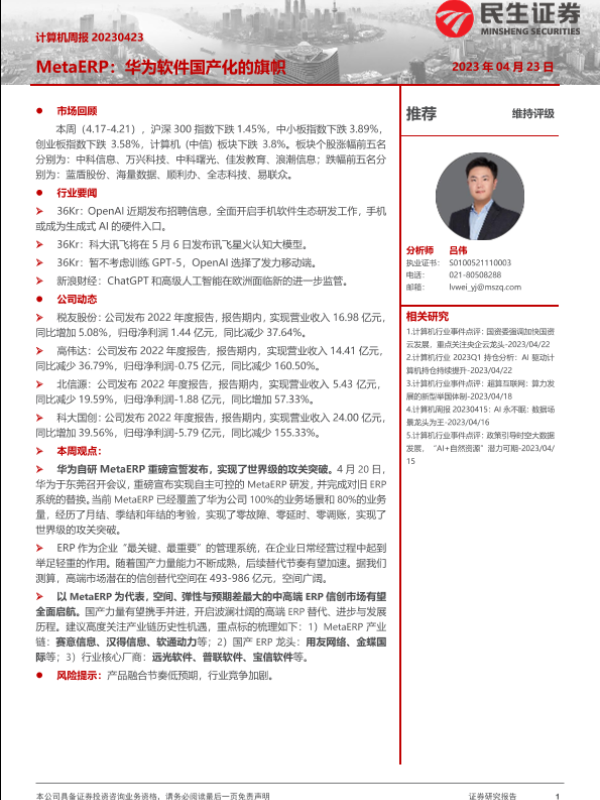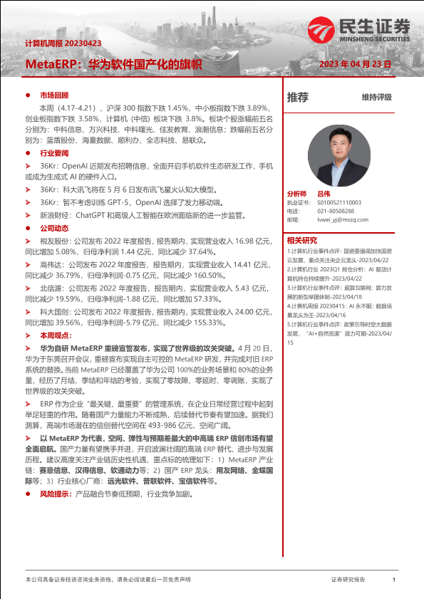 【民生证券】【20230423】计算机周报:MetaERP:华为软件国产化的旗帜-25页