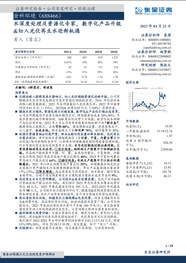 【东吴证券】【20230423】金科环境(688466)水深度处理及资源化专家,数字化产品升级&切入光伏再生水迎新机遇-29页