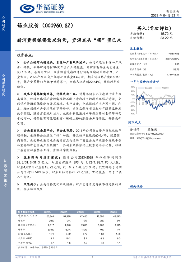 【华福证券】【20230423】锡业股份(000960)新消费提振锡需求前景,资源龙头“锡”望已来-25页