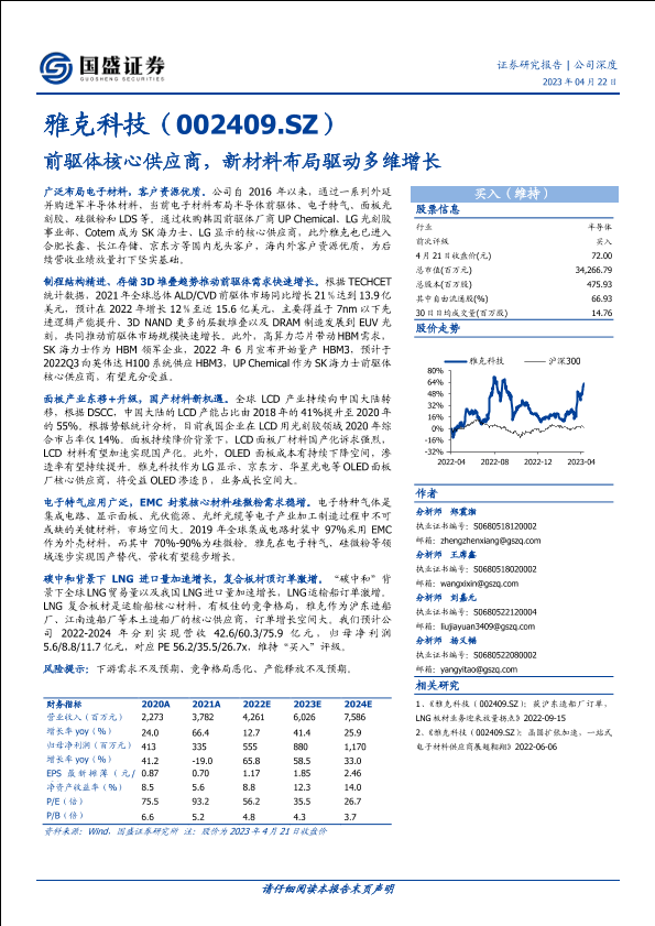 【国盛证券】【20230422】雅克科技(002409)前驱体核心供应商,新材料布局驱动多维增长-26页