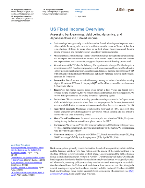【J.P. Morgan】【20230421】US Fixed Income Overview Assessing bank earnings, debt ceiling dynamics, and Japanese flows in US fixed income-14页