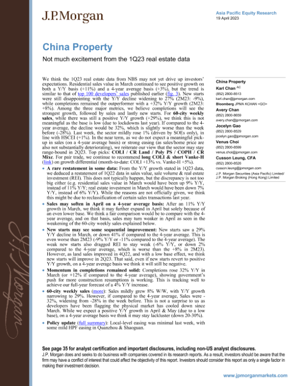 【J.P. Morgan】【20230419】中国房地产 - 2023年第一季度房地产数据未带来太多兴奋点-39页