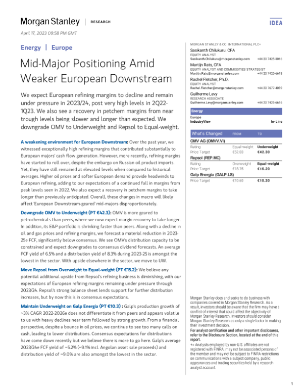 【Morgan Stanley】【20230417】Energy Mid-Major Positioning Amid Weaker European Downstream-28页
