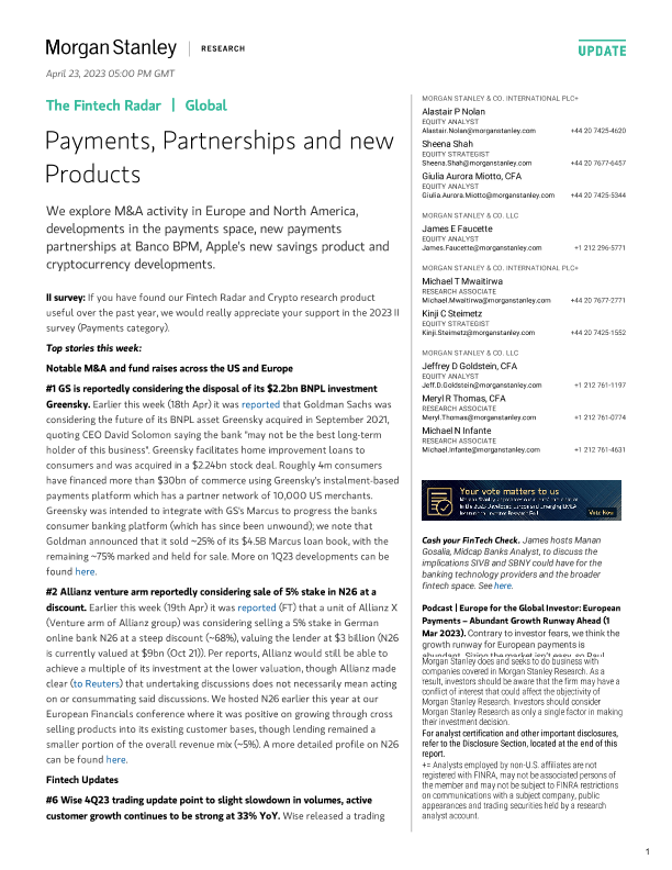 【Morgan Stanley】【20230423】Morgan Stanley-The Fintech Radar Payments, Partnerships and new Products-33页
