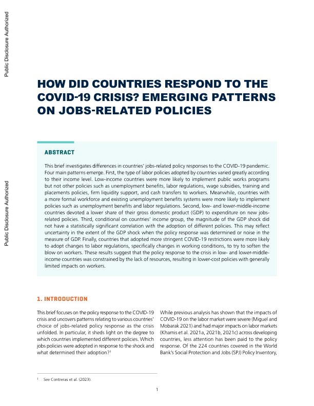 【世界银行】【202304】各国如何应对新冠肺炎危机?新兴的就业模式与政策相关-18页