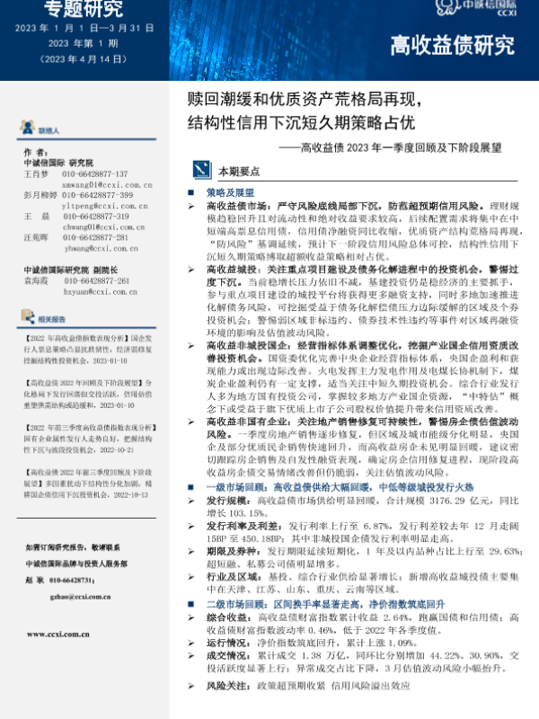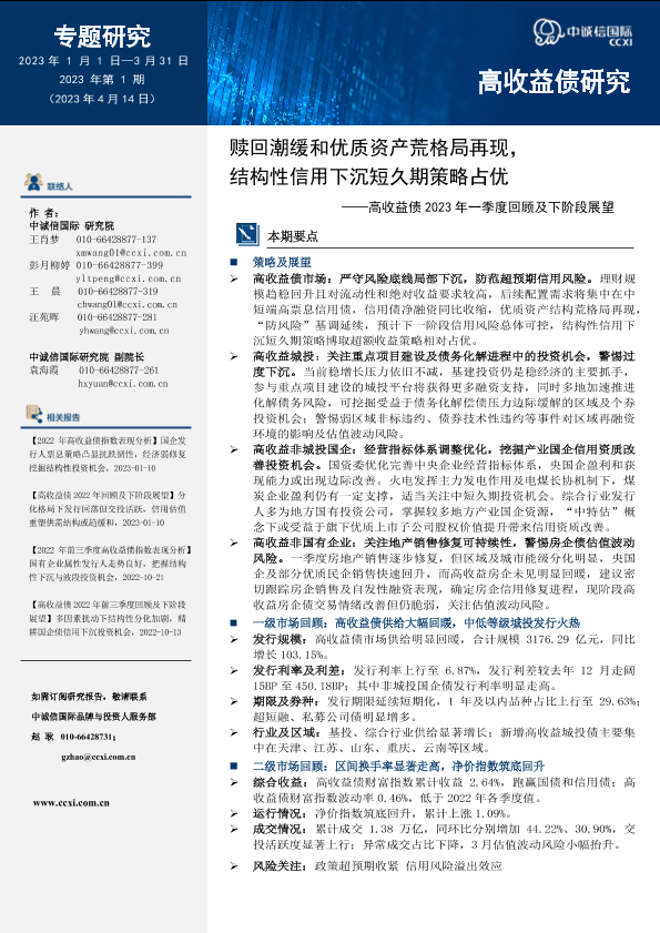 【中诚信国际】【20230414】赎回潮缓和优质资产荒格局再现,结构性信用下沉短久期策略占优-14页