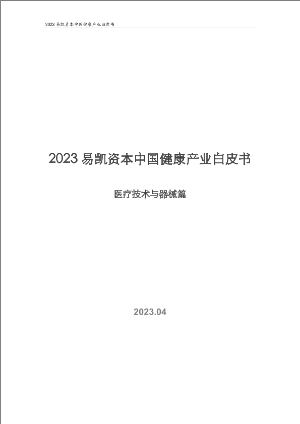 【易凯资本】【20230428】2023易凯资本中国健康产业白皮书(医疗技术与器械篇)-58页